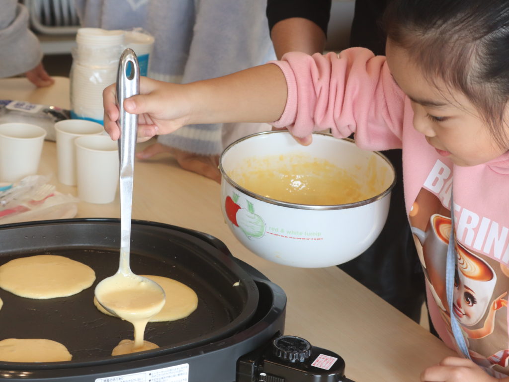 普段の生活ではなかなか交流する機会がない異年齢や他校の仲間と一緒に勉強し、遊び、パンケーキを作る中で、新しい刺激と楽しさを感じてくれたようです。