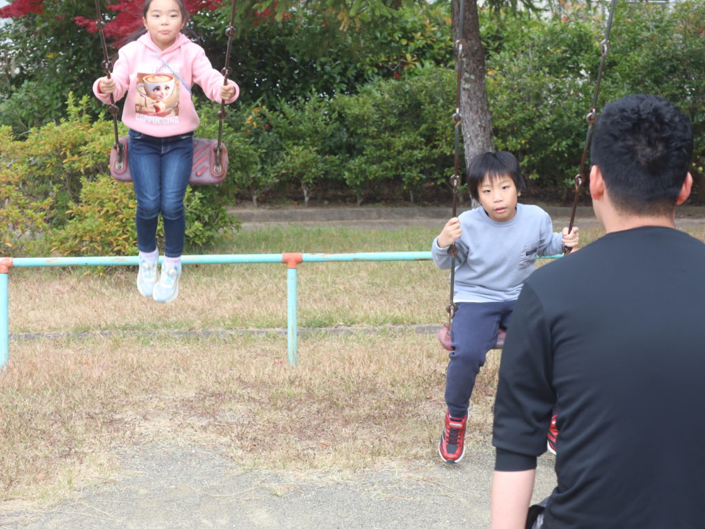 ボランティアさんが「食欲の秋」の下ごしらえを進める間、子どもたちは近くの公園へGO!遊具、なわとび、ドッジビー、鬼ごっこで思い切り体を動かしました。寺子屋リーダーの名取さんも満面の笑みで鬼ごっこに参加し、子どもたちと一緒になっていい汗を流しました!