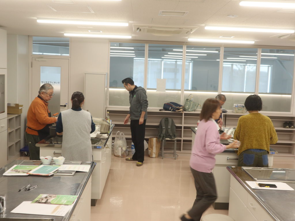 会場のクッキングスタジオでは、朝9時から 「旬菜クラブ」 の皆さんが手際よく準備を進めていました。