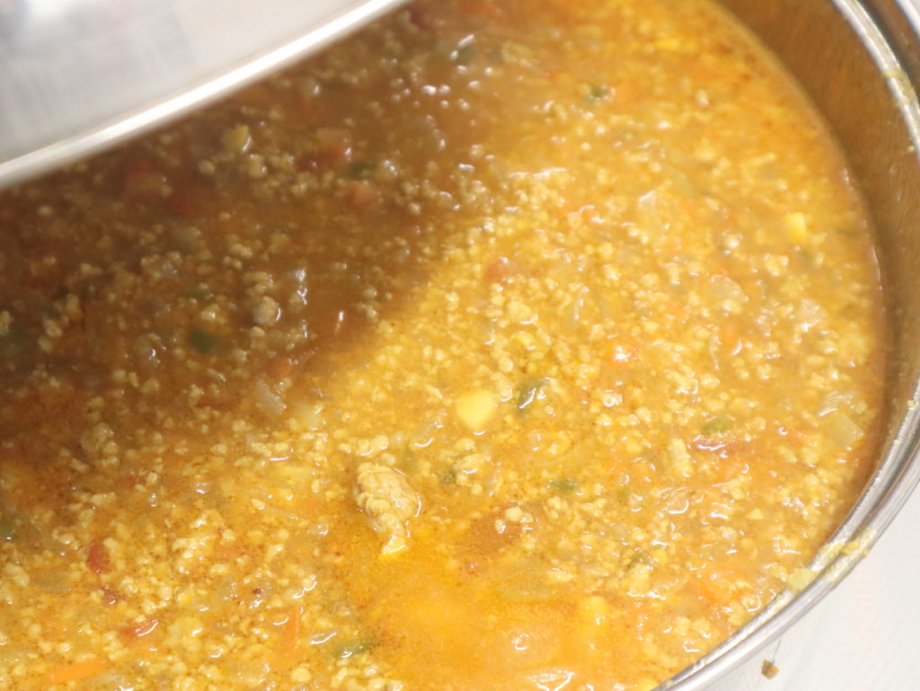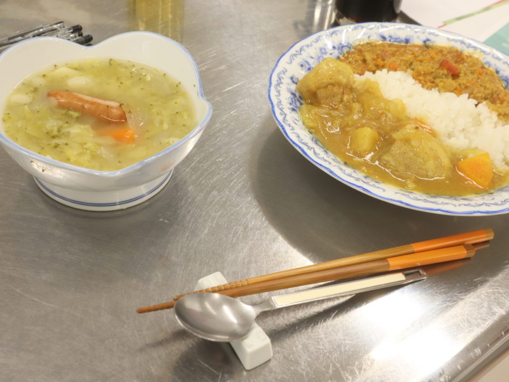 当初のメニューは、スパイスが香りつつも優しい味わいの 「からくないキーマカレー」。そこに調理チームの粋なはからいが加わります。「せっかくだから、もっと満足してほしい」という温情から、急遽 「ポークカレー」 も作られることに!